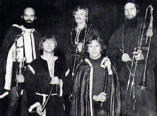 The Annapolis Brass Quintet in Renaissance garb, with period instruments, in 1977.
